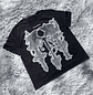 polera negra recortada 100% algodon con un estampado blanco con efecto evegentado.